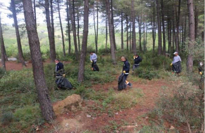 Aydos Ormanı’nda çöp toplama seferberliği başlatan Kartal Belediyesi Temizlik İşleri Müdürlüğü ekipleri, ormana atılan; plastik, cam, ambalaj kutuları ve diğer katı atıklar için çalışma başlatarak gün boyunca yüzlerce kilo çöp topladı.
