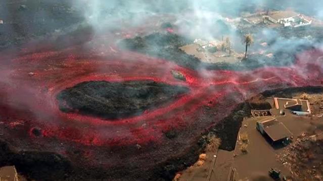 İspanya’nın La Palma adasında 19 Eylül’den bu yana faaliyette olan Cumbre Vieja Yanardağı’nda dün kraterin kuzey duvarının çökmesinden sonra, lav çıkışının daha da hızlandığı ve yeni lav akıntıları oluştuğu bildirildi. Yeni oluşan lav akıntıları son 24 saatte 40 hektardan fazla alanı yok ederken, daha önce tamamen tahliye edilen Todoque köyünde sağlam kalan binaları ve tarlaları da haritadan sildi.