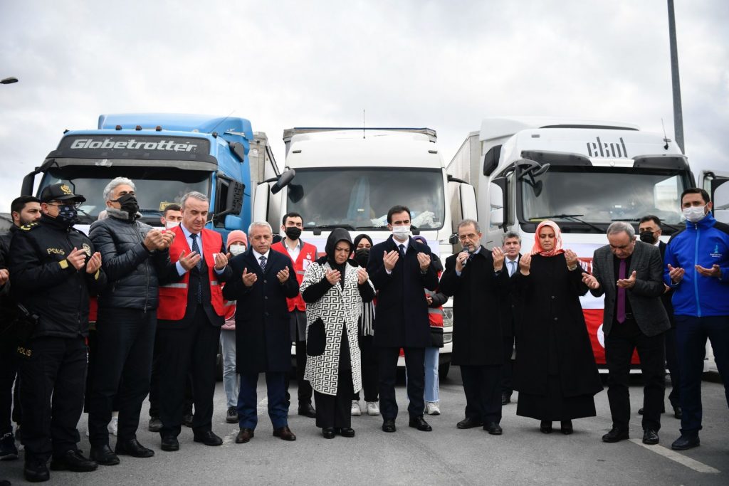 Yapılan protokol konuşmalarının ardından edilen dua ile 3 tır insani yardım malzemesi dolu tır yola çıktı.