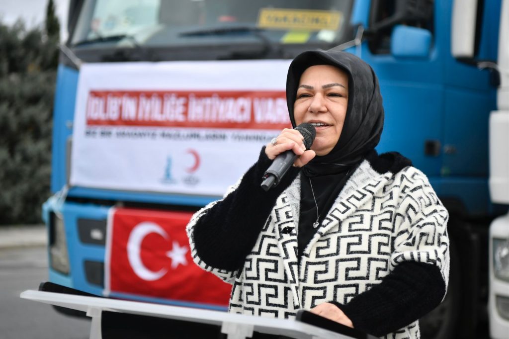 Sancaktepe Belediye Başkanı Şeyma Döğücü, “Mazlum coğrafyalarda olan tüm insanlığı düşünen Sayın Cumhurbaşkanımızın geliştirmiş olduğu bu güzel anlayışla biz de Sancaktepe’den İdlib’e yaşanan bu soğuklarda orada evsiz çadırlarda üşüyen kardeşlerimize 3 tır yardım gönderiyoruz. Malumunuz dünya sıkıntılı bir süreçten geçiyor ve etrafımızda bir sürü sıkıntılar yaşanıyor. Biz Sancaktepe Belediye’si ve Sancaktepe’deki vatandaşlarımız olarak tüm mazlum coğrafyaların her daim yanında olduğumuzu gerek ülkemizde yaşanan afetlerde, gerek daha önceki senelerde de kışları yapmış olduğumuz yardımlar gibi bugün de İdlib’e tırlarımızı gönderiyoruz. Kızılay’ın öncülüğünde hayırseverlerimizle birlikte oluşturmuş olduğumuz bu yardım malzemelerimizi oradaki mazlumlarımıza gönderiyoruz.” dedi.