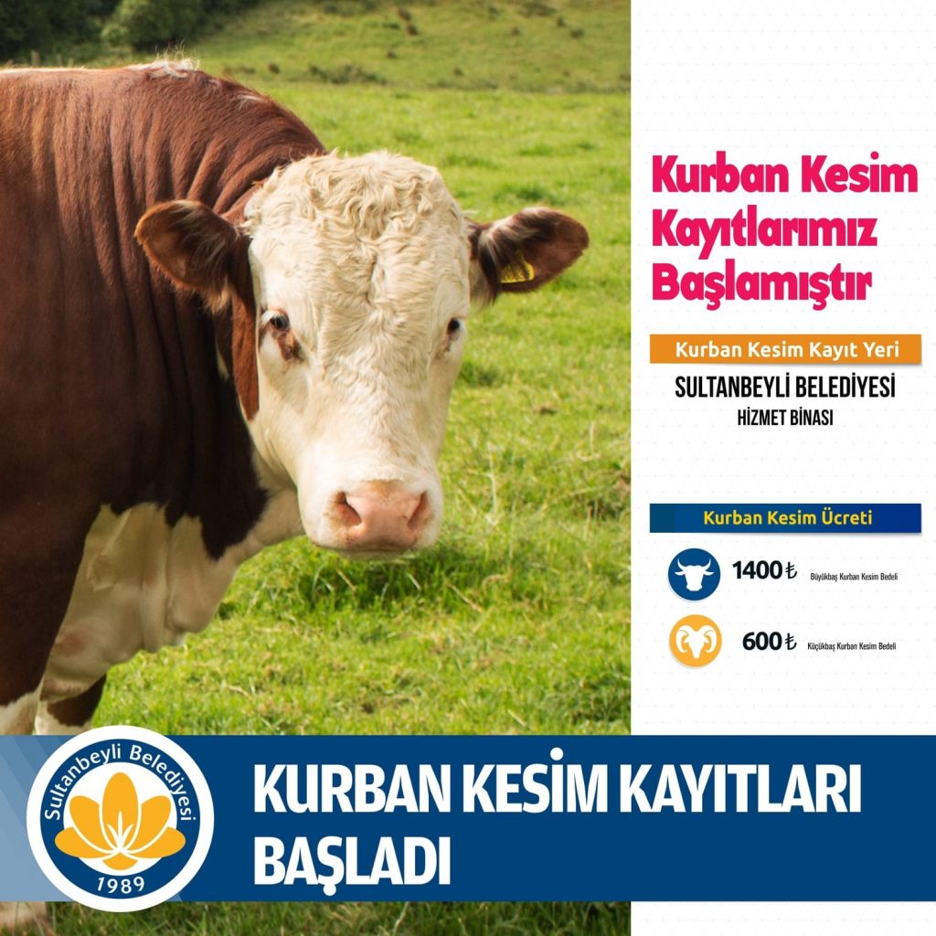 Sultanbeyli Belediyesi her yıl olduğu gibi bu yılda ibadetini yerine getirecek olan vatandaşlara kurban kesim hizmetinde bulunacak. Kurban Bayramı’na bir ay kala kurban kesim kayıtlarının başladığını duyuran Sultanbeyli Belediyesi, vatandaşların Sultanbeyli Belediyesi Hizmet Binası’nda oluşturulan kayıt masasına müracaat ederek, kayıtlarını yaptırabilecekleri belirtildi.