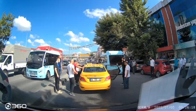 Kadına şiddet olayı trafikteki bir başka sürücünün araç kamerasına yansıdı. Görüntülerde kendisine darbeden kişiden kaçmaya çalışan kadının, taksiye bindiği görülüyor.