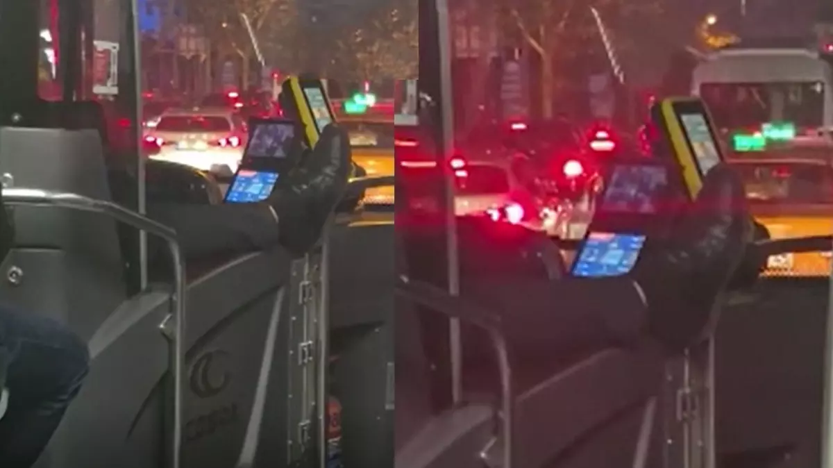 İETT otobüsü şoförünün ‘İstanbulkart’ basılan cihazın bulunduğu alana ayağını uzatarak aracını sürmesi cep telefonu kamerasıyla görüntülendi. Seyir halindeki ‘622-Yenidoğan-Mecidiyek...
